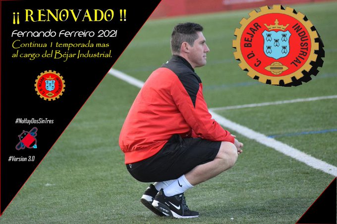 El Béjar industrial ha celebrado la renovación de su entrenador, Fernando Ferreiro, por una temporada mas. El entrenador aceptó la propuesta de renovación del club por un año más y estará al cargo del primer equipo del Béjar Industrial por 3ª temporada consecutiva, tal y como lo han anunciado desde el propio club.