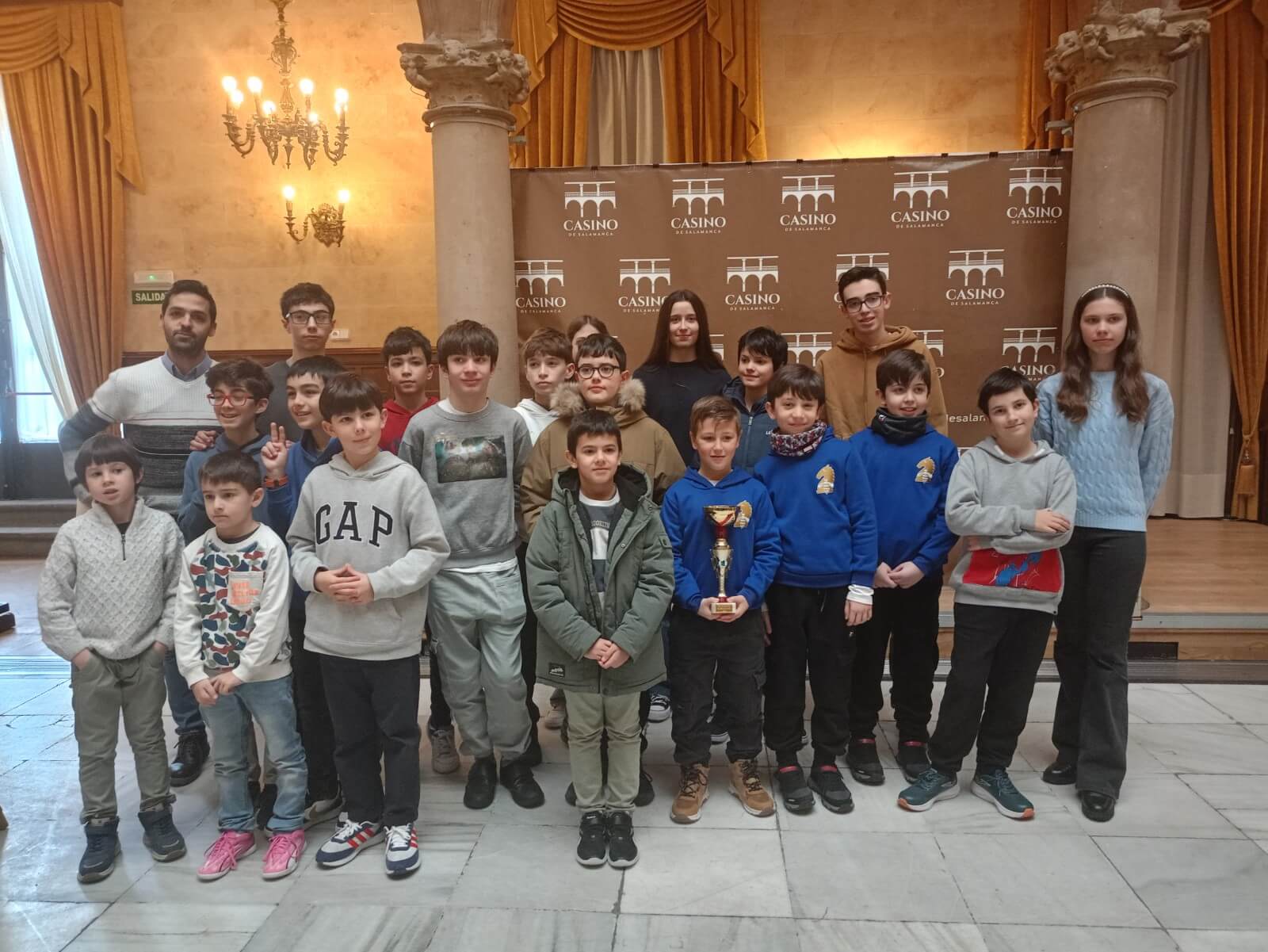Este domingo, en el emblemático Casino de Salamanca, se disputó el Campeonato Provincial Federado por Equipos por Edades de ajedrez, una competición round robin en la que los seis equipos participantes se enfrentaron todos contra todos. La prueba congregó a los clubes de Ateneo, Casino, Galledrez, Salamanca y dos equipos de Béjar, todos ellos formados por cuatro jugadores.