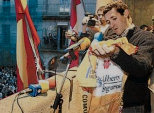 Los componentes de la peña Ciclista Roberto Heras en pleno hicieron el recorrido desde la sede de la misma, el bar Xairo, hasta la Plaza Mayor, como si de una manifestación se tratase, portando un gran número de pancartas y coreando vítores y eslogans por su ídolo. En Béjar se encontraron con menos problemas que en Madrid, donde se sintieron avasallados por la Policía que no les dejó situarse para ver al vencedor de la Vuelta a España.