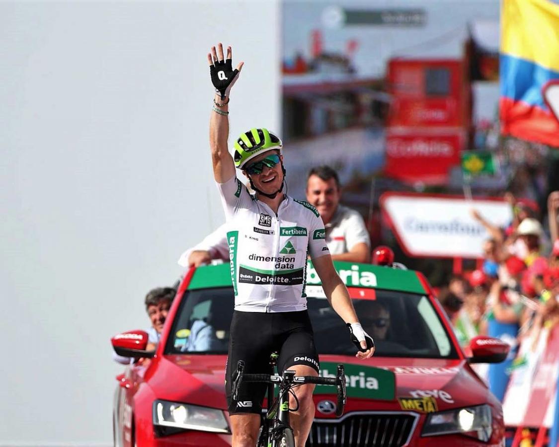 Bauke Mollema (Trek-Segafredo), segundo clasificado en la estación de esquí salmantina la última vez que La Vuelta llegó a su cima, en 2011, ha atacado en el grupo perseguidor en busca del americano, y a pesar de haberse acercado a 20 segundos, no ha podido atraparle.