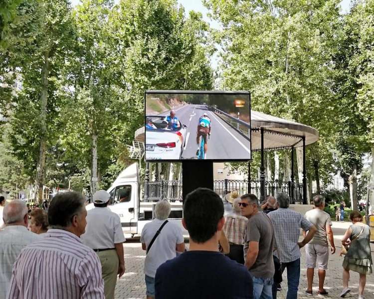 Hasta el parque municipal se acercaban cientos de personas para ver los preparativos de los distintos patrocinadores de la ronda española.