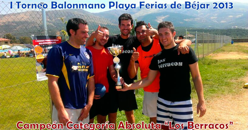 Los campeones de esta I edición del torneo balonmano playa ferias de Béjar en categoría absoluta fue para el equipo de “LOS BERRACOS” venciendo en la final a “Los hombres de Tano”; en la categoría Sub-16 el triunfo fue para “LOS CAMPEROS” ganando a los otros finalistas “La Antigua”.
