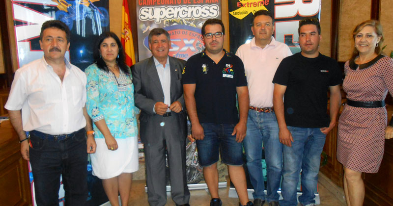 El alcalde de Béjar, Alejo Riñones, acompañado por el concejal de deportes, Raúl Martín, presentaban el Campeonato de España de Supercross junto al Presidente del Club Deportivo Off-Road bejarano, Francisco Villarroel Romero, y el representante del Moto Club Xtreme, Enrique González.