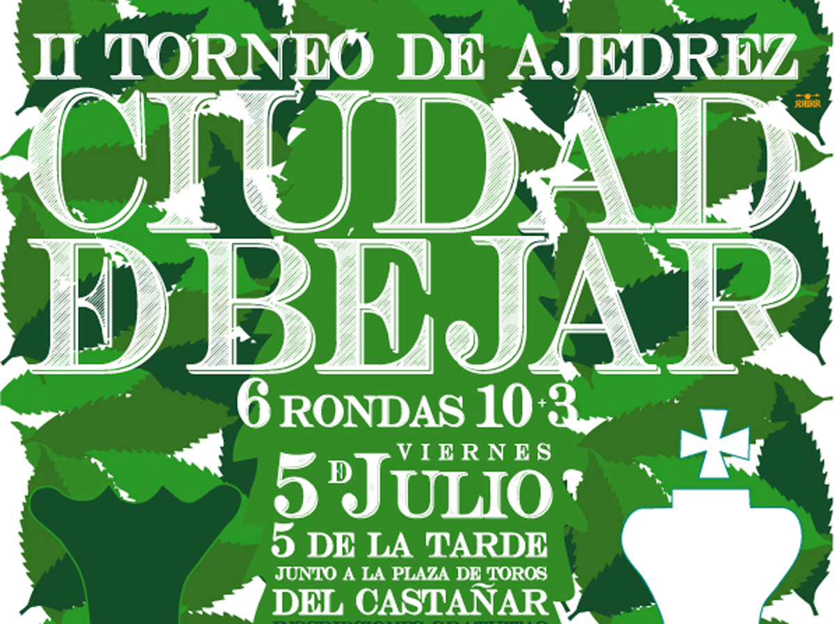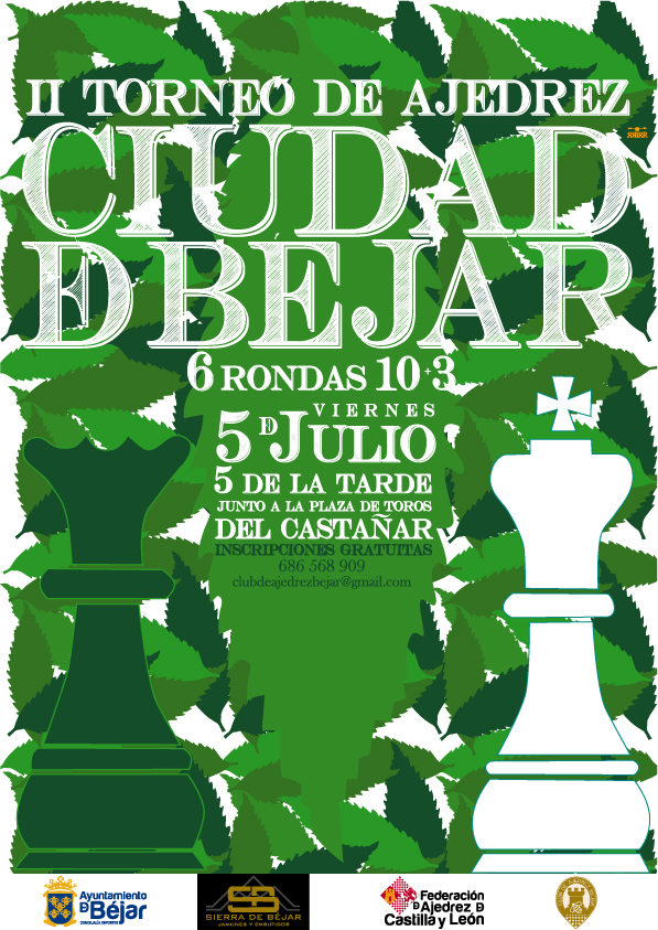 - Inscripciones gratuitas en: 686 568 909 (Ricardo) o por correo electrónico clubdeajedrezbejar@gmail.com