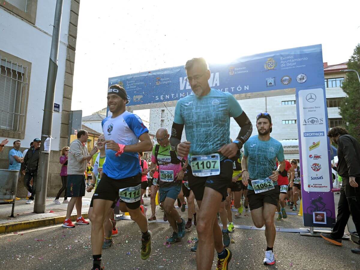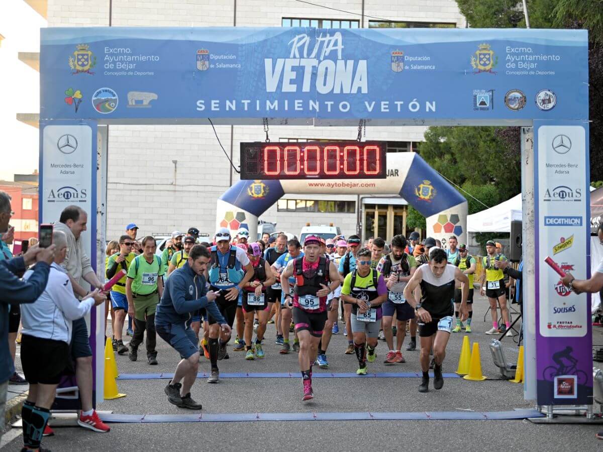 La novena edición de la Ruta Vetona comenzó este sábado a las 8:00 de la mañana en la Plaza de Santa Teresa, Béjar, Salamanca. Fue la primera de las tres modalidades que hoy disfrutaron los participantes inscritos a las carreras a pie. La jornada salió redonda. Y es que tras las nubes de primera hora de la mañana el día abrió y el sol acompañó a los corredores a lo largo de su desafío. Jaime Calleja, con un tiempo de 9:20:00, y Carlos Enrique Soler, con 10:34:14, completaron el podio masculino de la modalidad más larga y exigente del programa. En el cuadro femenino la victoria estuvo mucho más abierta y, tras una aguerrida pelea entre las corredoras de cabeza, Concha Arias se imponía con un crono de 15:36:52. La segunda y tercera posición la compartieron Carmen Mesonero (16:05:51) y Paloma Martín (16:05:52).
