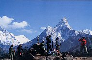 A las seis de la tarde de hoy han partido desde el Aeropuerto Madrid-Barajas con destino a la ciudad nepalí de Katmandú los cuatro integrantes de la expedición "Béjar - Himalaya. Ama Mablam 2004". Los alpinistas, tres de ellos bejaranos intentarán hacer cumbre en el mítico pico Ama Dablam (6.856 metros) considerada como la cima más bella del planeta.