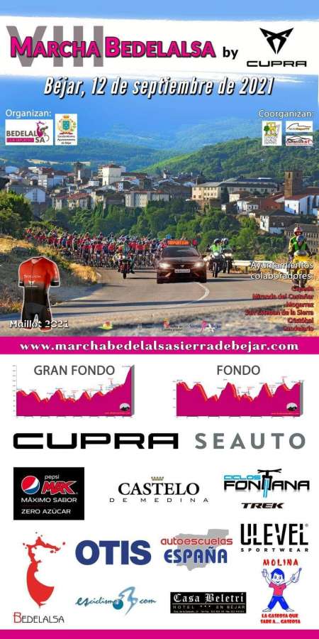 La octava edición de la Marcha Bedelalsa by CUPRA se celebrará finalmente el domingo 12 de septiembre de 2021 en Béjar (Salamanca). Tras anunciar el pasado jueves que la prueba se celebraría el 5 de septiembre, el Club Deportivo Bedelalsa se ha visto obligado a cambiar la fecha de la prueba que será finalmente el 12 de septiembre.