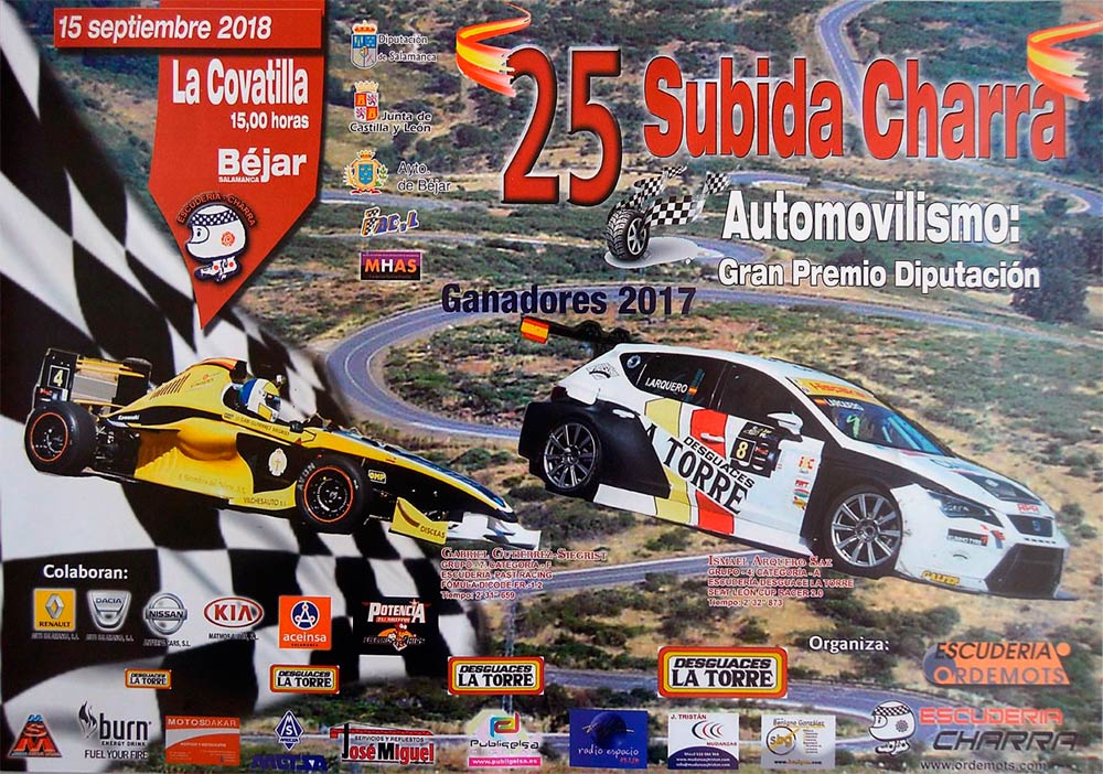 Escudería Charra Ordemots / En estos 25 años los patrocinadores han sido la pieza fundamental para poder hacer frente al presupuesto de la carrera. Desde el primer año se ha contado con el apoyo incondicional de Auto Salamanca (concesionario Renault), y Turismos Salamanca S.L. (concesionario Honda). Así como del apoyo de Musical Sánchez Marcos (sonido de meta), METSA, José Miguel (maquinarias de construcción), Motos Dakar, Aveinsa, Darconsa, Mudanzas Tristán, Benigno González, Electrochips, Publigelsa y Coca-Cola; destacando un nuevo sponsor que se incorpora ala prueba: Desguaces La Torre, de Madrid.