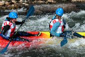 Por si esto fuera poco, la niebla ayudó a hacerles la tarea realmente difícil. "Ha sido una sección muy dura", comenta uno de los primeros raiders, "tuvimos que orientarnos por las curvas de nivel y la altura. Afortunadamente clavamos todas las balizas". Lo de localizar los puntos de control a la primera no es tarea fácil, aunque hay quien comenta que determinados competidores desayunan brúlas y mapas. Los equipos Buff, Gallaecia Bugarent y Aresa Acció comienzan a tomar protagonismo. Sin embargo, no hay tiempo que perder, tras recoger el equipamiento necesario, se disponen a afrontar la segunda sección, que se ha situado en la Cental del Chorro, junto a la Laguna Duque, en la localidad abulense de Solana: cinco kilómetros más de carrera y rappel.