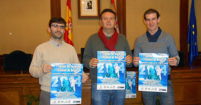 Raúl Hernández, concejal de deportes del Ayuntamiento de Béjar, presentaba junto al Presidente de la Federación de Triatlón de Castilla y León, Amancio del Castillo Serrano, y el Vicepresidente del Club Deportivo bejarano Tribeteam, Miguel Martínez, el primer Triatlón de Invierno "Ciudad de Béjar".