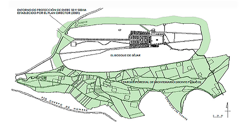 Por otro lado, la Comisión Provincial de Patrimonio de Salamanca ya informó favorablemente sobre una nueva delimitación del BIC, que incluiría todas las fincas de El Bosque (lo que hoy es el BIC y el entorno de protección aprobado en 1995) y ampliaría el nuevo Entorno de Protección al monte de utilidad pública denominado Monte Mario y a una banda de 50 metros alrededor de la finca en el resto de direcciones. Y el Plan Director, va aún más allá y abre la posibilidad de extender esa banda entre los 50 y los 500 metros, según los casos y además incluye dentro de la definición del BIC, la regadera que abastece a la finca de El Bosque .