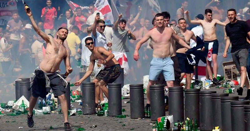 Ya me disponía a buscar en la despensa una botella que descorchar cuando la voz en off me bajaba de la nube: no eran citoyens indignados, sino hinchas rivales tras un partido de fútbol, ingleses y rusos borrachos de violencia. Al parecer, estas hordas de homínidos habían empatado en estupidez.