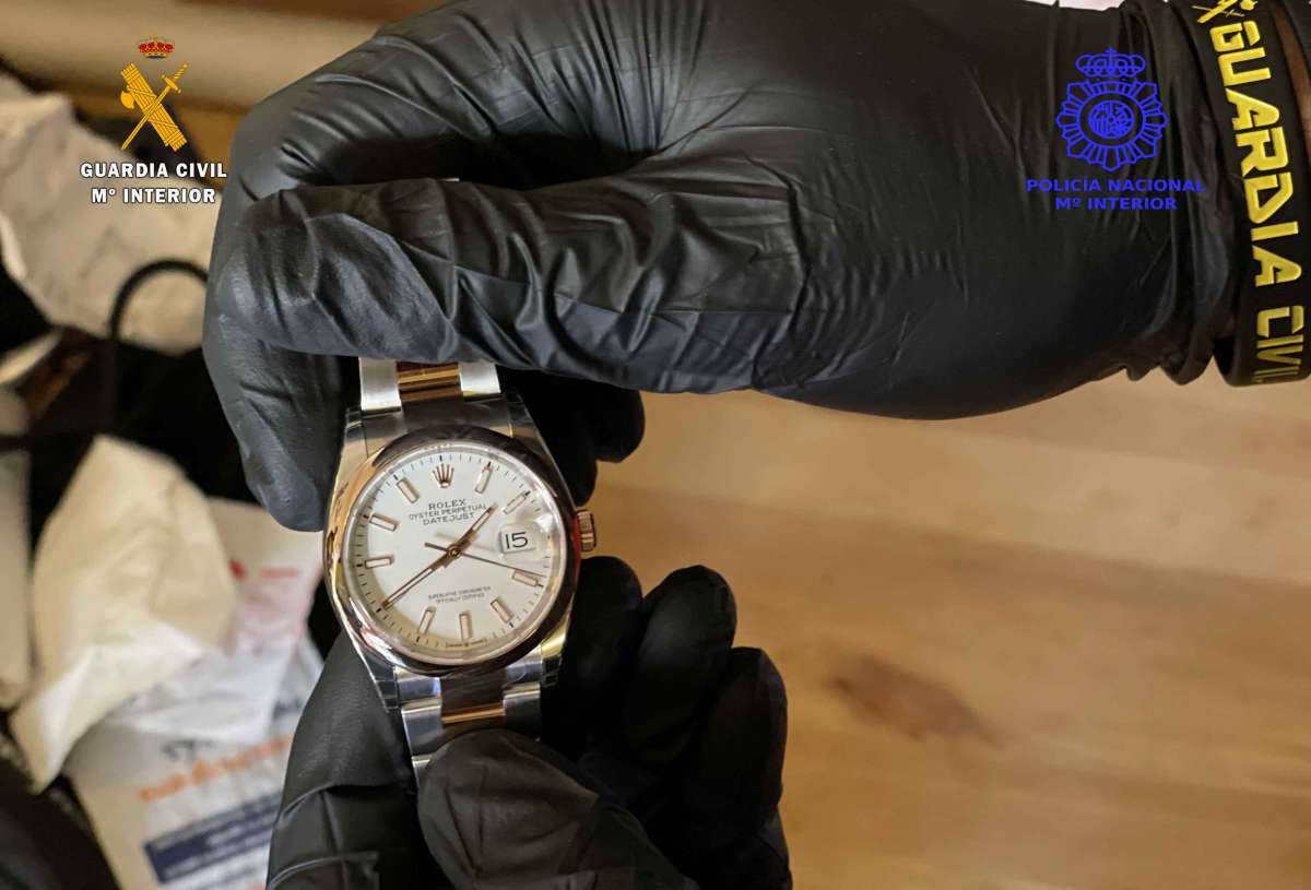 En uno de los registros se encontró en el interior de una caja de seguridad oculta en el interior de un libro, un reloj valorado en más de 10.000 euros y procedente de la citada joyería, así como 9.000 euros en efectivo, procedentes, a buen seguro, de la venta de joyas. También se encontraron las caretas utilizadas en algunos de los robos para ocultar sus caras. Dichas caretas son como las que aparecen en series televisivas.