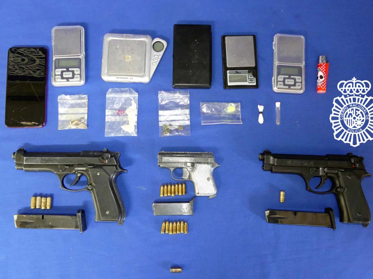 Agentes de la Policía Nacional, con la colaboración de Policía Local, han detenido a dos hermanos, varones de 31 y 47 años, y a una mujer relacionada con uno de ellos, de 25 años, como resultado del operativo de seguridad y la investigación practicadas en relación con las amenazas y disparos contra una vivienda en la que residían familiares de los dos varones. Además, y como resultado de la investigación, se han practicado cuatro registros domiciliarios, interviniéndose en el transcurso del operativo tres armas de fuego, munición, un teléfono móvil y cinco balanzas de precisión, entre otros efectos.
