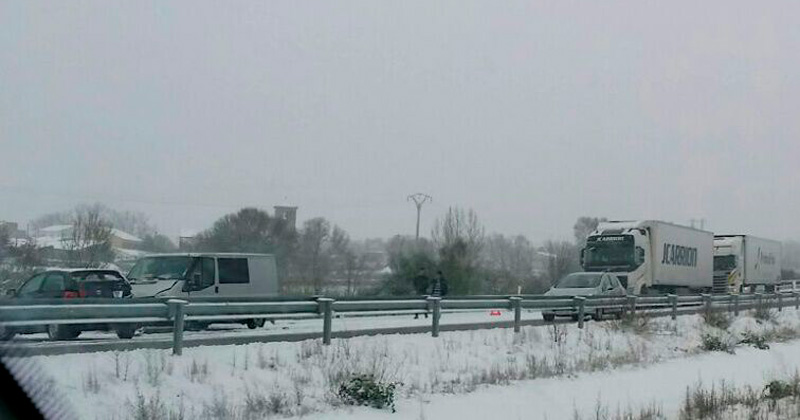 Una persona fue atropellada mientras señalizaba el accidente. Las condiciones climatológicas y la nieve caída propiciaron las colisiones en la autovía sentido a Salamanca.