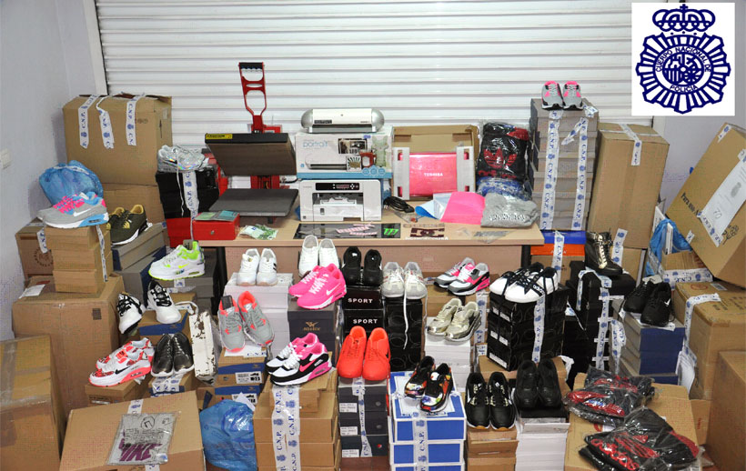 Por las mismas investigaciones se tuvo conocimiento de que los encartados utilizaban su vivienda como punto de almacenaje y distribución, donde además contaban con toda la maquinaria y útiles necesarios para realizar las falsificaciones, tales como prensas, editores y cortadoras de anagramas, ordenadores e impresoras, etc., motivo por el que provistos de los preceptivos Mandamientos Judiciales, los Agentes procedieron a realizar un minucioso Registro del inmueble, dando como resultado la incautación de toda la maquinaria utilizada, así como de 217 pares de zapatillas presuntamente falsificadas de las marcas NIKE, ADIDAS, REEBOOK y LEVIS, 287 prendas deportivas de las marcas NIKE y ADIDAS y 31 bolsos de señora de las marcas GUCCI, DOLCE & GABANNA, TOUS, CHANEL etc.