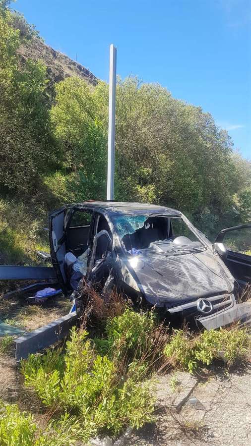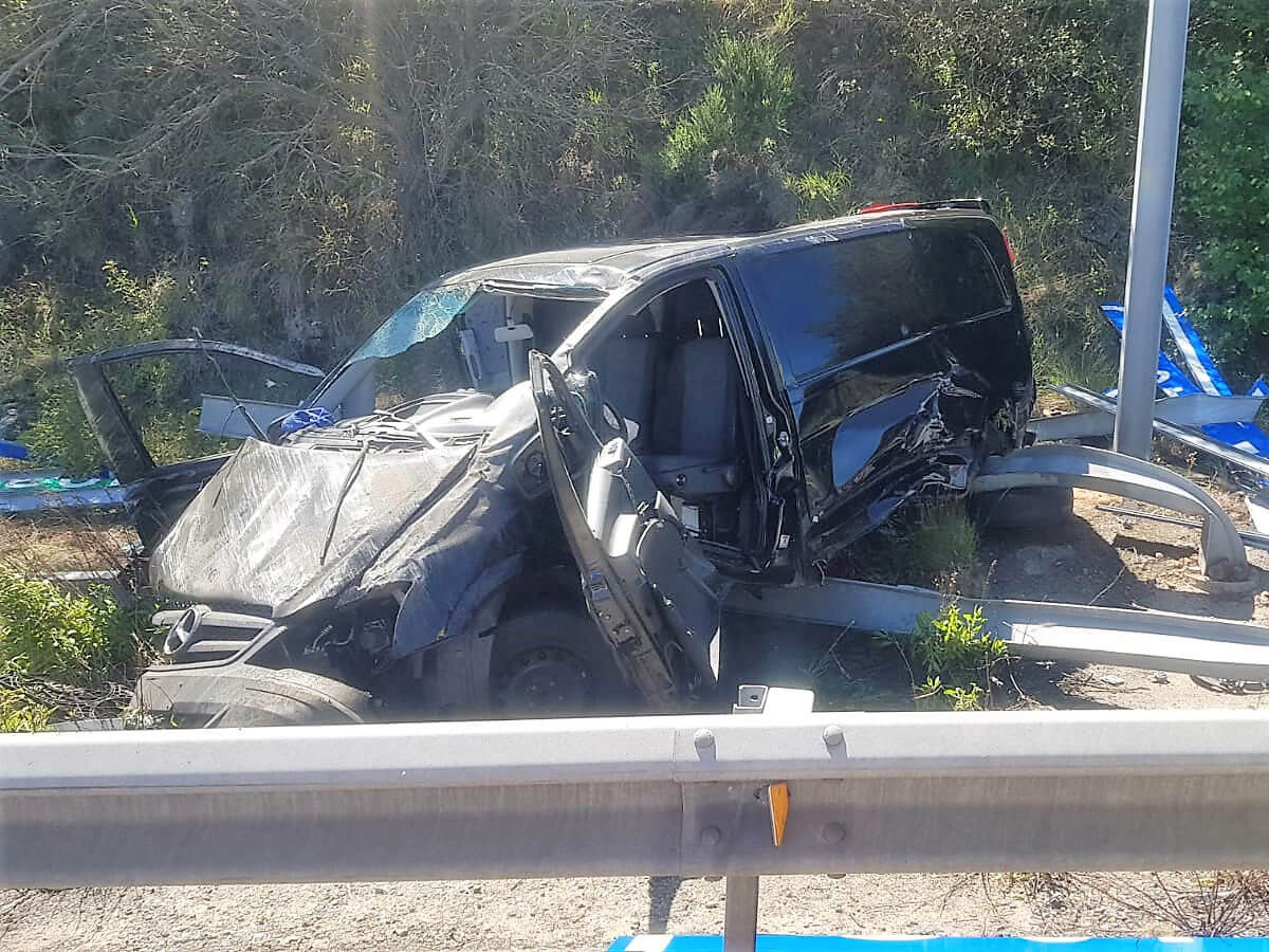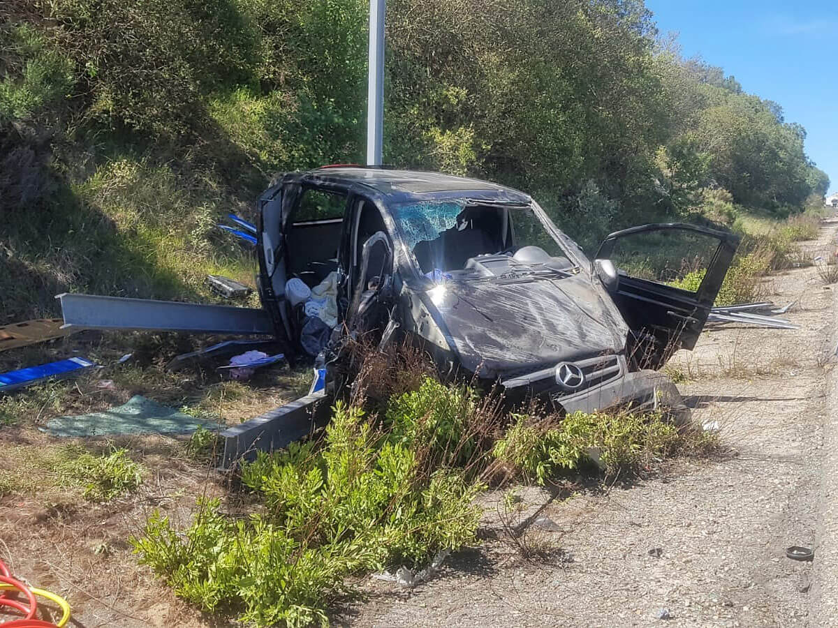 El vehículo se salió de la autovía por el margen derecho impactando contra un cartel indicador de grandes dimensiones.