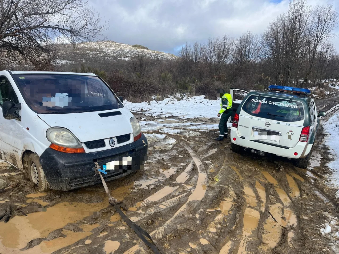 La Guardia Civil de Salamanca rescató este domingo, 25 de enero, a tres personas que quedaron atrapadas en su vehículo a causa de la nieve en un camino de montaña entre Navacarros y la carretera DSA-180, en la subida a la estación invernal de La Covatilla.