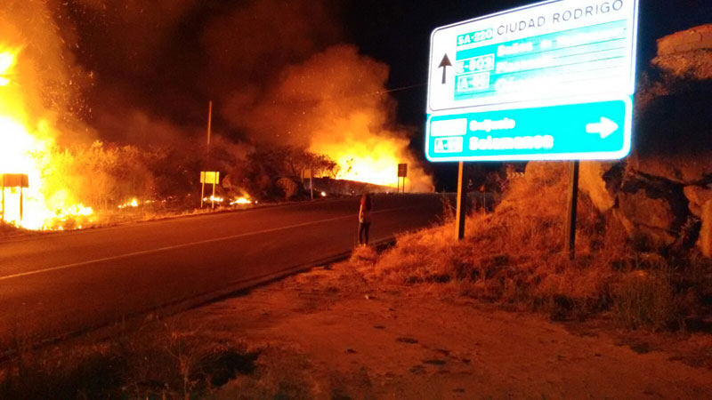 El fuego se declaraba sobre las 22:30 en la carretera de Ciudad Rodrigo, junto al antiguo vertedero de Las Lanchillas. Hasta el lugar se desplazaron varias dotaciones de bomberos de Béjar, Guardia Civil y Policía Local, estos últimos para regular el tráfico de los vehículos que circulan por ese punto de la SA-220.