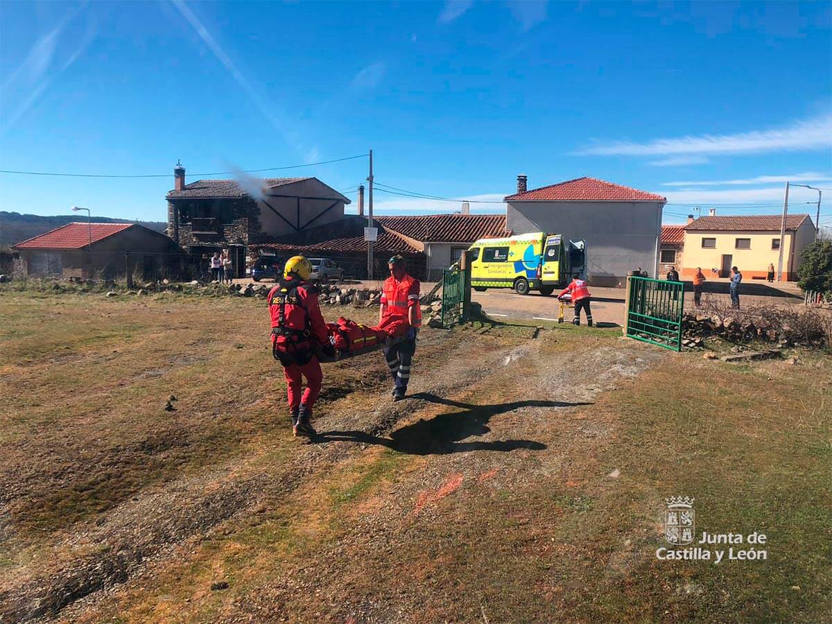 La aeronave, finalmente, aterrizó en las inmediaciones del lugar en el que se encontraba la ambulancia de Emergencias Sanitarias, para trasladar posteriormente al Complejo Asistencial de Salamanca - edificio Virgen de la Vega.