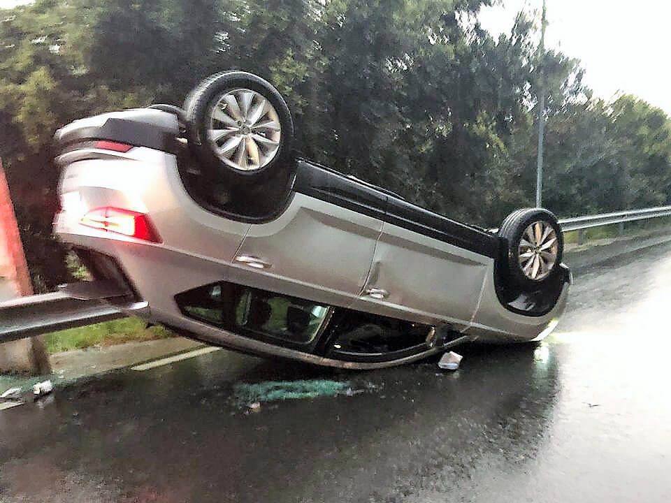 El conductor ha huido del lugar dejando el coche volcado en medio de la calzada