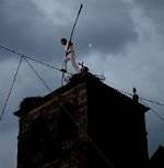 Los Bordini asombran a propios y extraños con sus evoluciones sobre el cable tendido al vacío en la Plaza Mayor. Su única retribución: la participación voluntaria de los ocasionale…