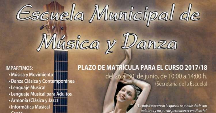 El periodo de matriculación para los nuevos alumnos de la escuela municipal de Música y Danza se abrirá el 22 de junio y permanecerá abierto hasta el día 30.