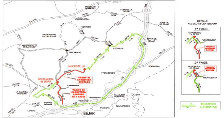 La Diputación ha cortado por obras, de forma provisional el acceso a la autovía A66 desde la carretera de Navalmoral. El acceso a Fuentebuena queda garantizado.