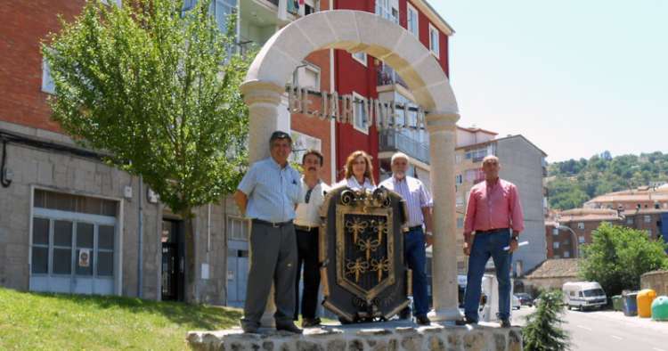 Se trata de un arco de piedra tallado y un escudo realizado en hierro y piezas recicladas, que en la parte superior se puede leer el lema "Béjar, Vívela"
